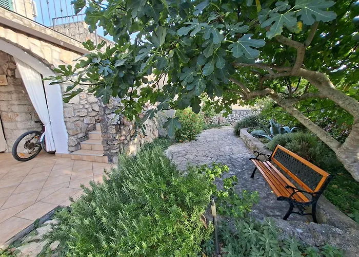 Die 2-Zimmer- Villa Stone House With Garden Laganini Zlarin befindet sich in ca. 6 km Entfernung von der Kirche und dem Kloster des Hl. Franziskus und verfügt über eine Terrasse.
